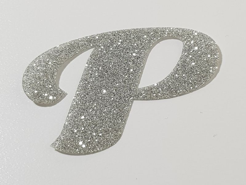 ELASTIC GLITTER LETTER P FONT 1, SILVER