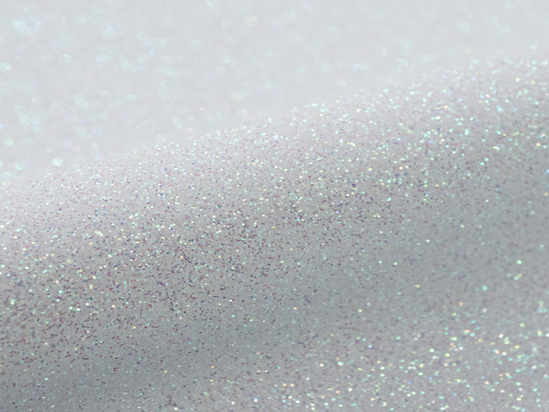 in polyurethane with bright GLITTERED surface, non-adhesive polyester support.