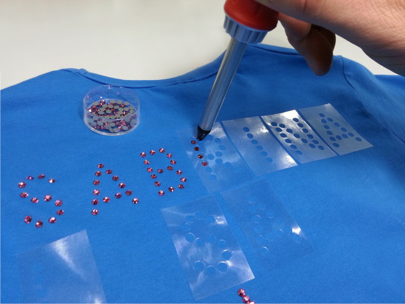 The letters are realized by cut circles of 5 mm of diameter, SUITABLE FOR SS16 - SS20 rhinestones. Height of letters 40 mm.